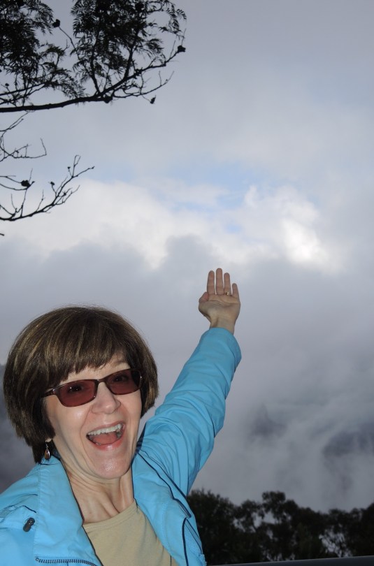 Disbelief had set in that we could see the sun, the Blue Mountains, or even a speck of blue sky, then there it was! Betsy rejoiced. By the time she turned around it was gone, but the camera doesn’t lie.