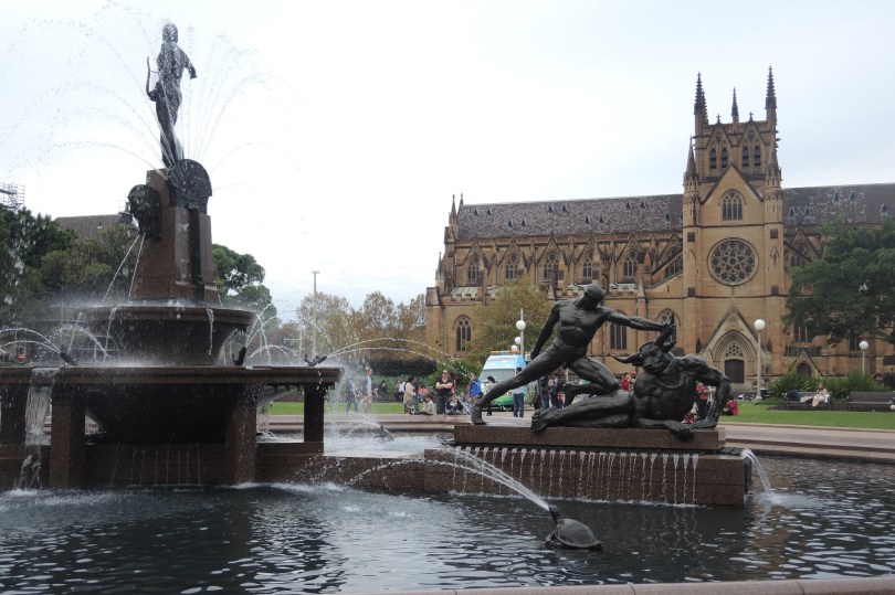 Day15-Part-of-St-Marys-Church-Near-Hyde-Park-Fountain April 28, 2014 1793 × 1195 Day 15: Veni, Vidi, Sydney! That’s only half the huge St. Mary’s Catholic Church behind the fountains of Sydney’s Hyde Park.