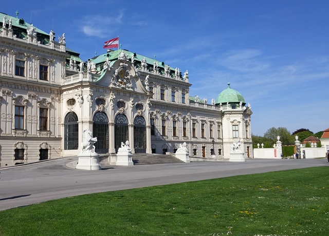 Just on the perimeter of the central city, easily within walking distance, and located on the tram line that can take us to or from the ship’s port, we find Belvedere Palace. Today this edifice is a museum, and the grounds have retained their vast gardens. It is late afternoon and we have a big night planned, thus the viewer sees what we did, which is grandeur.