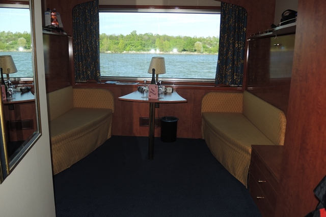 Our *cabin* which the crew insists we shall not call a *room,* because this hotel is afloat. For days the Danube will race swiftly by our window, whether we are tethered to the shore or going with the flow. We hate to see Vienna being put in the rear view mirror, but we will remember her well.