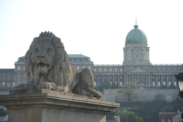 Chain Bridge lion protects palace.