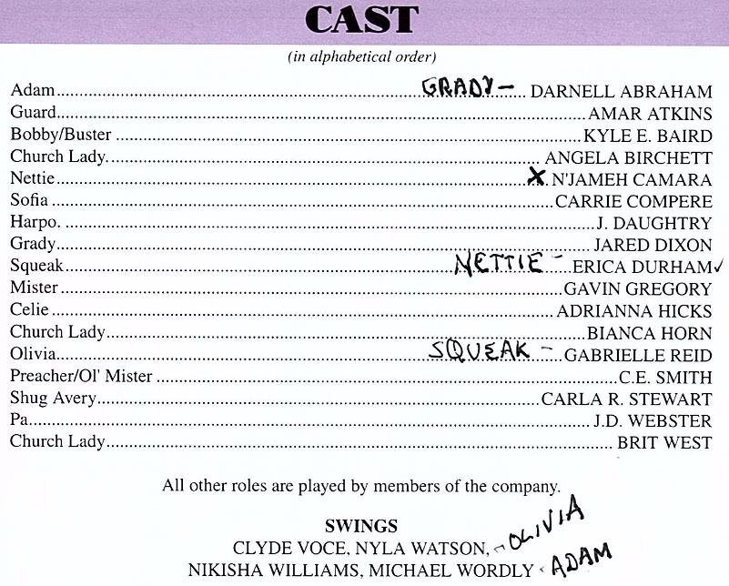 I did feel that Celie, in character and in song, grew stronger as the story deepened. Also, Gabrielle Reid as Squeak (usually Olivia) was precise in her portrayal of a character with that moniker, and Carla Stewart’s Shug was pleasing in her vocalizations.